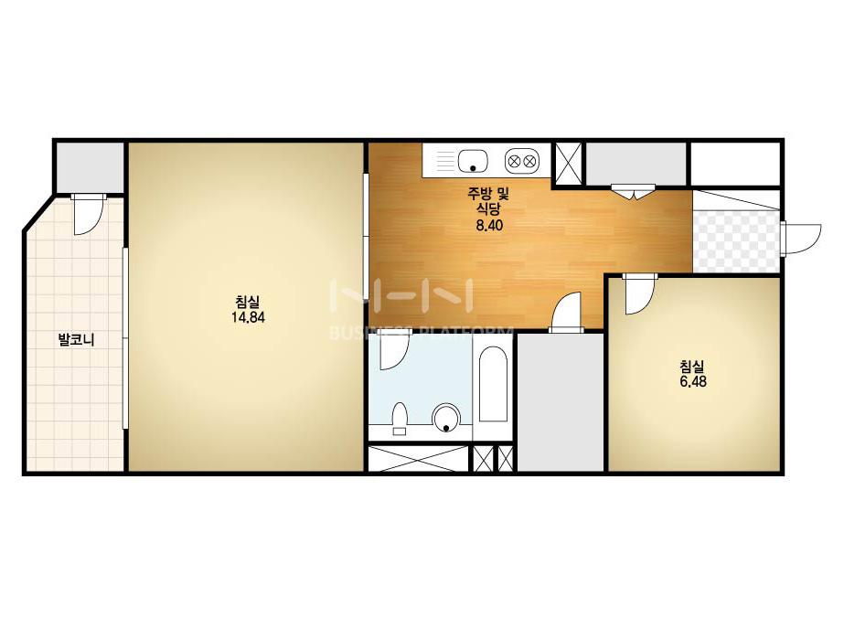 발코니 확장은 기본으로 하고, 침실과 주방의 경계를 없애 모두 Living room 같이 만들어서 공간을 크게 보이게 하는 거다.
